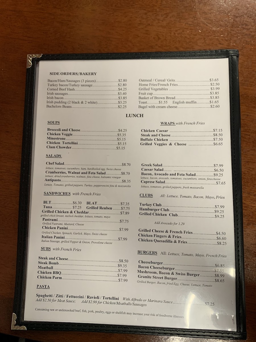 2 eggs, choice of irish bacon, irish sausage, or black and white pudding, toast and home fries.